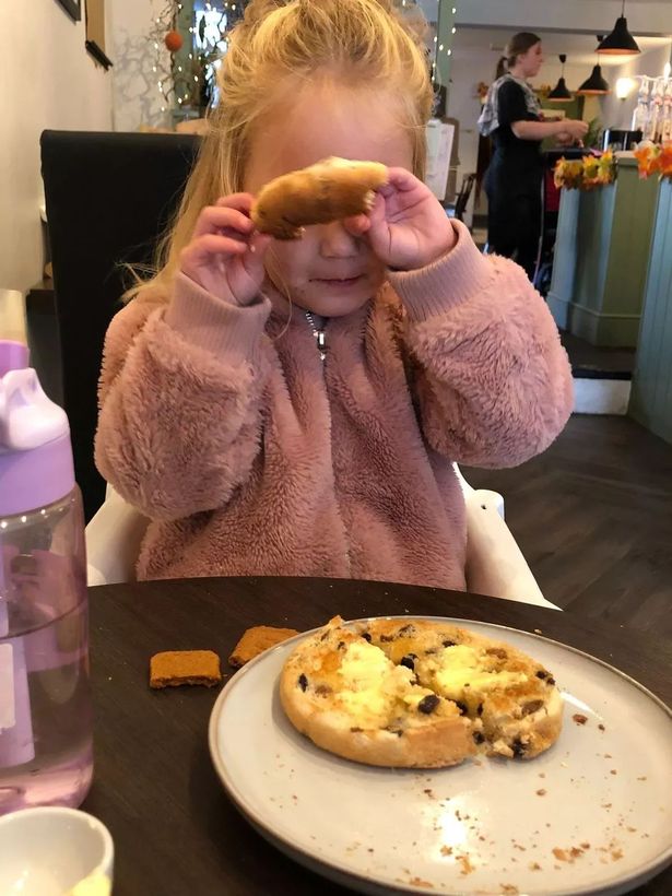 With schools now back open, I had just one little tasting accomplice with me, who was pretty raucous and her usual fidgety self until the food arrived. She went for a toasted teacake which kept her quiet-ish while I wolfed down the highly-unusual breakfast dish.