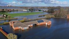 The River Aire overtopped its banks in February 2020, inundating properties in East Cowick, East Yorkshire.