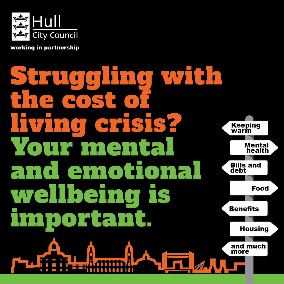 - Cost of Living Support – Hull City Council and Partners are here to help with any issues you are having with the cost of living, visit www.hull.gov.uk/costofliving or call 01482 300 303