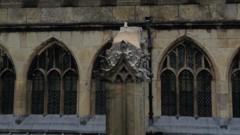 BBCThe area around Hull Minster has been partially closed after stonework on the roof became loose.